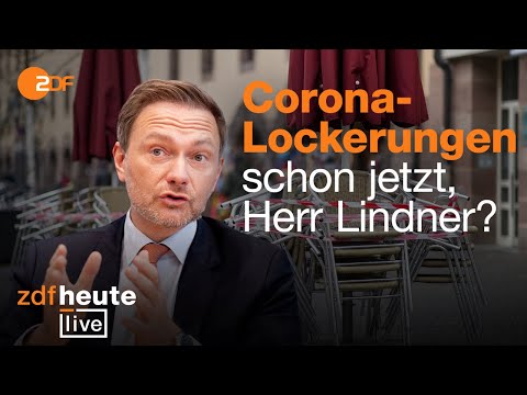 Inhalt: Sollten die Corona-Maßnahmen gelockert oder verlängert werden? Vor dem morgigen Treffen der Ministerpräsident*innen mit Bundeskanzlerin Merkel hat sich nun auch die FDP positioniert. Sie plädiert mit einem klaren Stufenplan für Lockerungen. Im ZDFheute live erklärt FDP-Parteichef Christian Lindner, was dieser vorsieht und warum die Beschränkungen - unter bestimmten Voraussetzungen - gelockert werden könnten. Außerdem zu Gast: Prof. Thorsten Lehr von der Universität des Saarlandes. Mit seinem Team hat er einen Covid-19-Simulator erstellt, anhand dessen verschiedene „Was-wäre-wenn“-Szenarien der Corona-Pandemie durchgespielt werden können. Mit Blick auf die Gefahr von Mutationen ist das von enormer Bedeutung - denn auch Bund und Länder müssen den Einfluss der Mutationen bei ihrer künftigen Corona-Strategie berücksichtigen. Eure Fragen an Christian Lindner und Thorsten Lehr könnt ihr wie immer in den Kommentaren stellen. ----- Hier auf ZDFheute Nachrichten erfahrt ihr, was auf der Welt passiert und was uns alle etwas angeht: Wir sorgen für Durchblick in der Nachrichtenwelt, erklären die Hintergründe und gehen auf gesellschaftliche Debatten ein. Diskutiert in Livestreams mit uns und bildet euch eure eigene Meinung mit den Fakten, die wir euch präsentieren. Abonniert unseren Kanal, um nichts mehr zu verpassen. Immer auf dem aktuellen Stand seid ihr auf http://www.ZDFheute.de/.